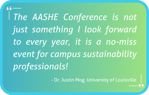 AASHE Conference & Expo convenes a diverse group of campus representatives including faculty, students, sustainability officers, staff and administrators together with business, nonprofit, government, community leaders and members.